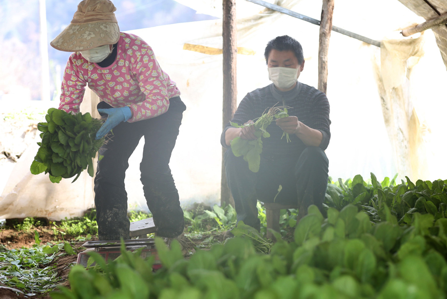 15日,湖北省十堰市張灣區花果街辦安溝村村民正在田間澆地培墑撒種、采收蔬菜。該村有集中連片土地250余畝,是城區鮮菜主要種植基地,為確保農業生產和城市供應,該村以疫情防控為底線,采取統購農資、分散錯時等辦法有序開展春播生產,確保將疫情損失降至最低。