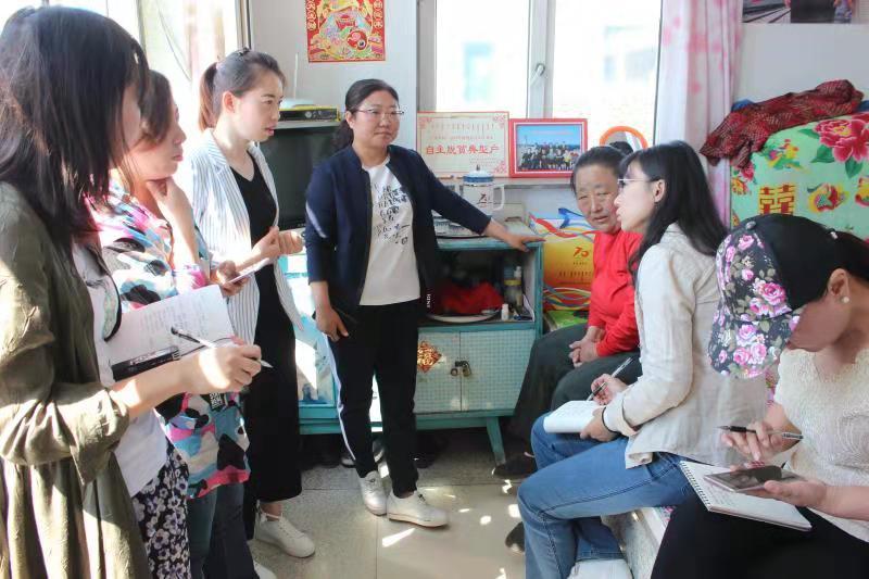 云峰(左二)與同事深入基層查看群眾生產(chǎn)生活情況。