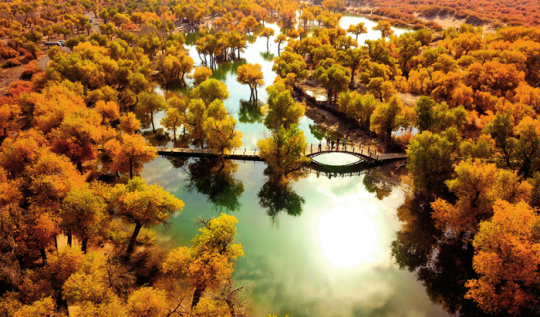內蒙古阿拉善盟額濟納旗境內的胡楊林。(彭源于2019年10月16日攝)