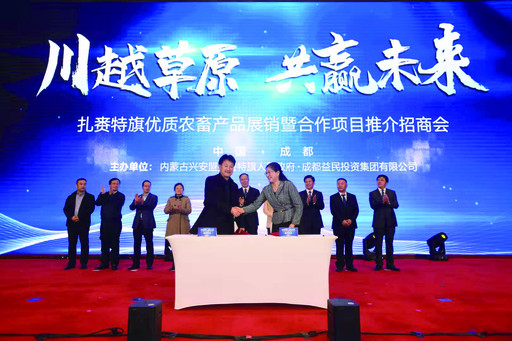 推介招商會上,扎賚特旗人民政府與成都益民集團正式簽訂戰略合作框架協議,將在種植、養殖板塊,糧食、肉類加工以及農副產品貿易等領域全面合作,聚焦成都市民對安全、綠色、健康食品的需求,助推“成都農場”“成都牧場”及國際消費中心城市建設,服務人民群眾美好生活。