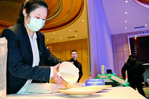扎賚特旗魏佳米業有限公司總經理魏建明說:“到這兒來之后我們才了解到,成都喜歡這種小的、真空包裝的米,這樣更容易保存,成都濕度大,我們這次回去之后還得要改進,把我們之前的大袋包裝再精細化、包裝再小一點,進行真空包裝,這樣能保證大米的保質期,而且口感會更好一些。