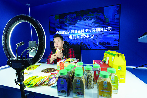 走進內蒙古新谷園食品科技股份有限公司電商運營中心,記者看到主播正在向屏幕前的觀眾介紹公司的主要產品——預熟雜糧。