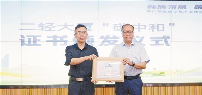 聽上去有些專業,運營主體海峽碳普惠(廈門)建設運營有限公司副總經理楊主山解釋道:“實現碳中和,通俗做法是產生的排放量通過購買減排量來抵消,正負相抵實現中和;2025年,廈門市二輕集體企業聯社權屬的二輕大廈辦公樓產生的能耗所排放的二氧化碳,被公交出行節省的碳排放逐一精準抵消、實現‘清零’,達成樓宇碳中和。”