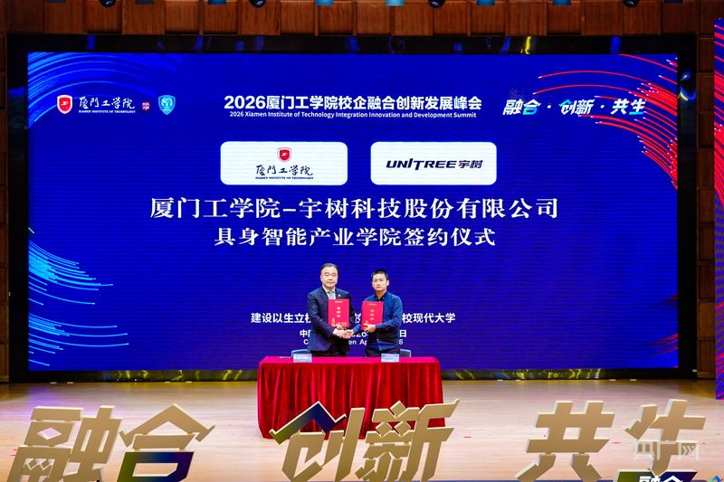 峰會現場,廈門工學院與宇樹科技股份有限公司等39家企業簽署了合作意向書,標志著雙方在產教融合領域邁出了堅實的一步。根據合作備忘錄,廈門工學院將與宇樹科技共建宇樹具身智能產業學院,聚焦人形與四足機器人賽道,培養具備硬件設計、算法開發與系統集成能力的復合型創新人才。此外,雙方還將在考試認證、師資建設、就業促進及競賽支持等領域開展深度合作,共同優化專業培養方案與課程體系,規劃建設體驗中心、教學實訓中心等多個功能區域,將真實商業項目嵌入實訓環節,提升學生的工程開發能力和崗位適配度。