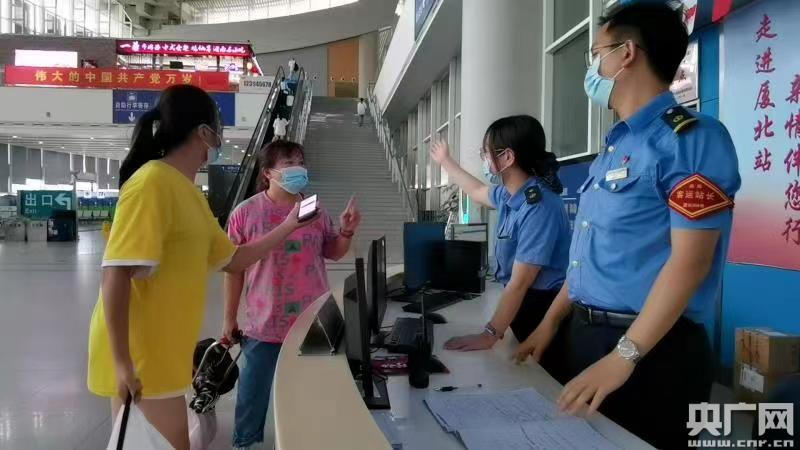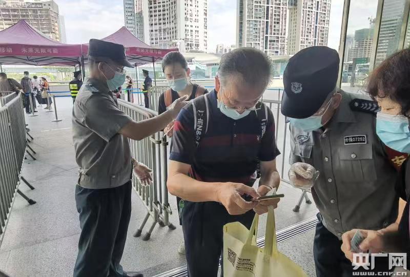 車站保安在檢查旅客健康碼(央廣網發 通訊員供圖)