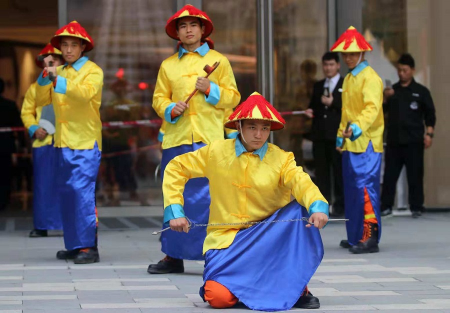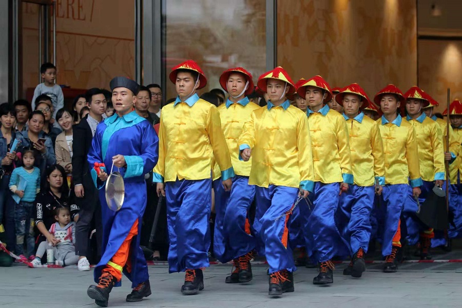 身穿古裝的消防員在表演中(央廣網發 曾德猛 攝)
