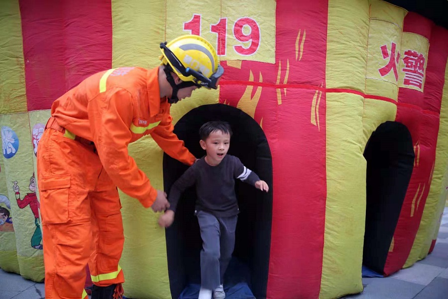 消防員在指導孩子學習火災逃生(央廣網發 曾德猛 攝)