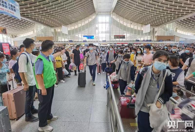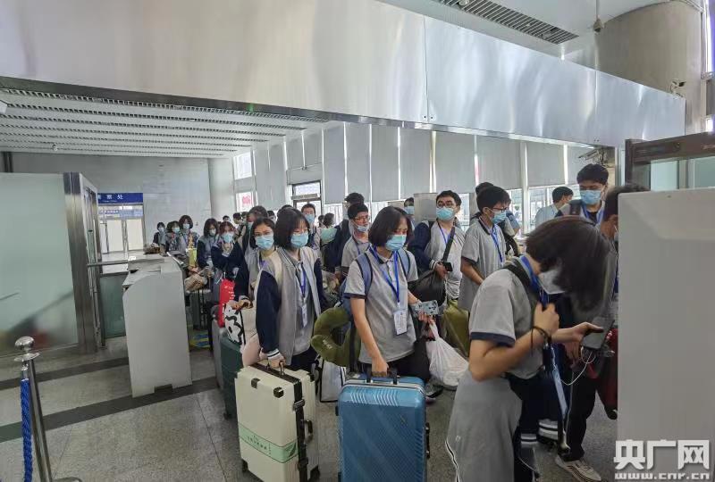 車站工作人員引導學生進站上車(央廣網發 通訊員供圖)