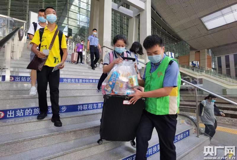 車站工作人員幫助學生搬運行李(央廣網發 通訊員供圖)
