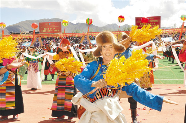 第十四屆珠峰文化旅游節(jié)開幕式演出——《美麗日喀則》大型草坪表演(日喀則報(bào)提供)