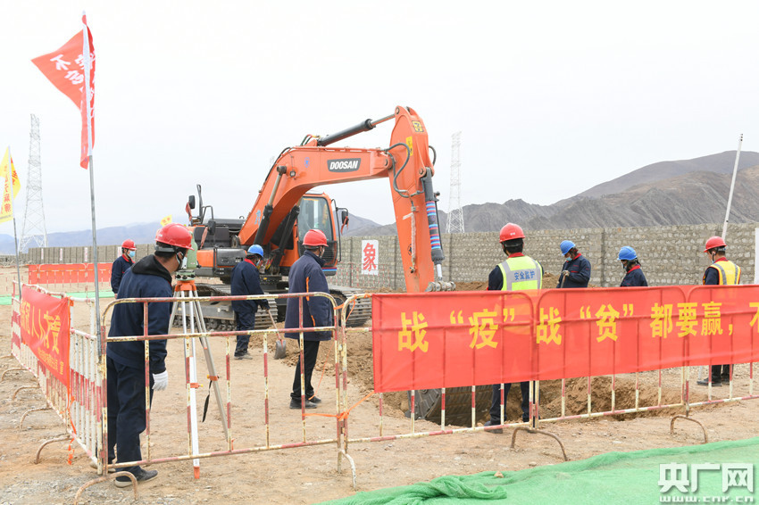 阿里與藏中電網聯網工程查務500千伏變電站新建工程——機械開槽配合人工清邊(央廣網發 閆昱翰 攝)