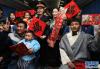 •      2月8日,乘務員在列車上為返鄉旅客送上春聯和新春的祝福。新華社記者 陳飛 攝
