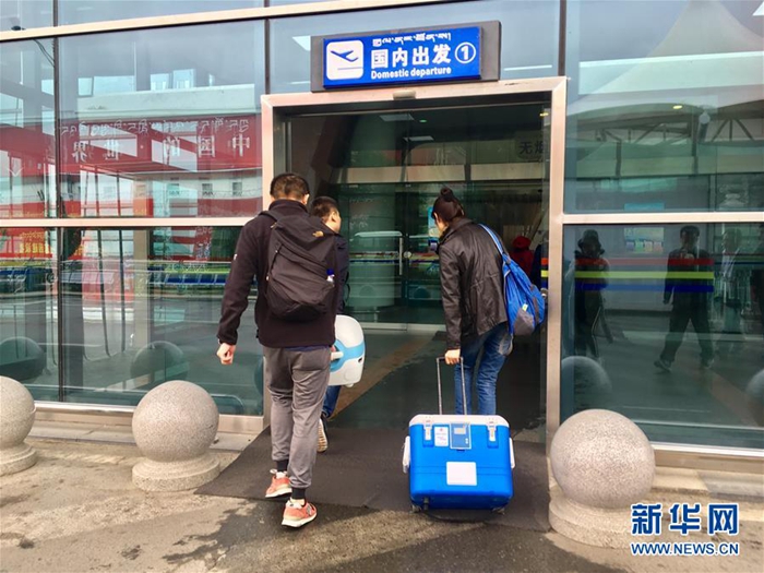 8月22日,在拉薩貢嘎機(jī)場,工作人員經(jīng)綠色通道將捐獻(xiàn)的器官送上飛機(jī)。 新華社記者王沁鷗攝