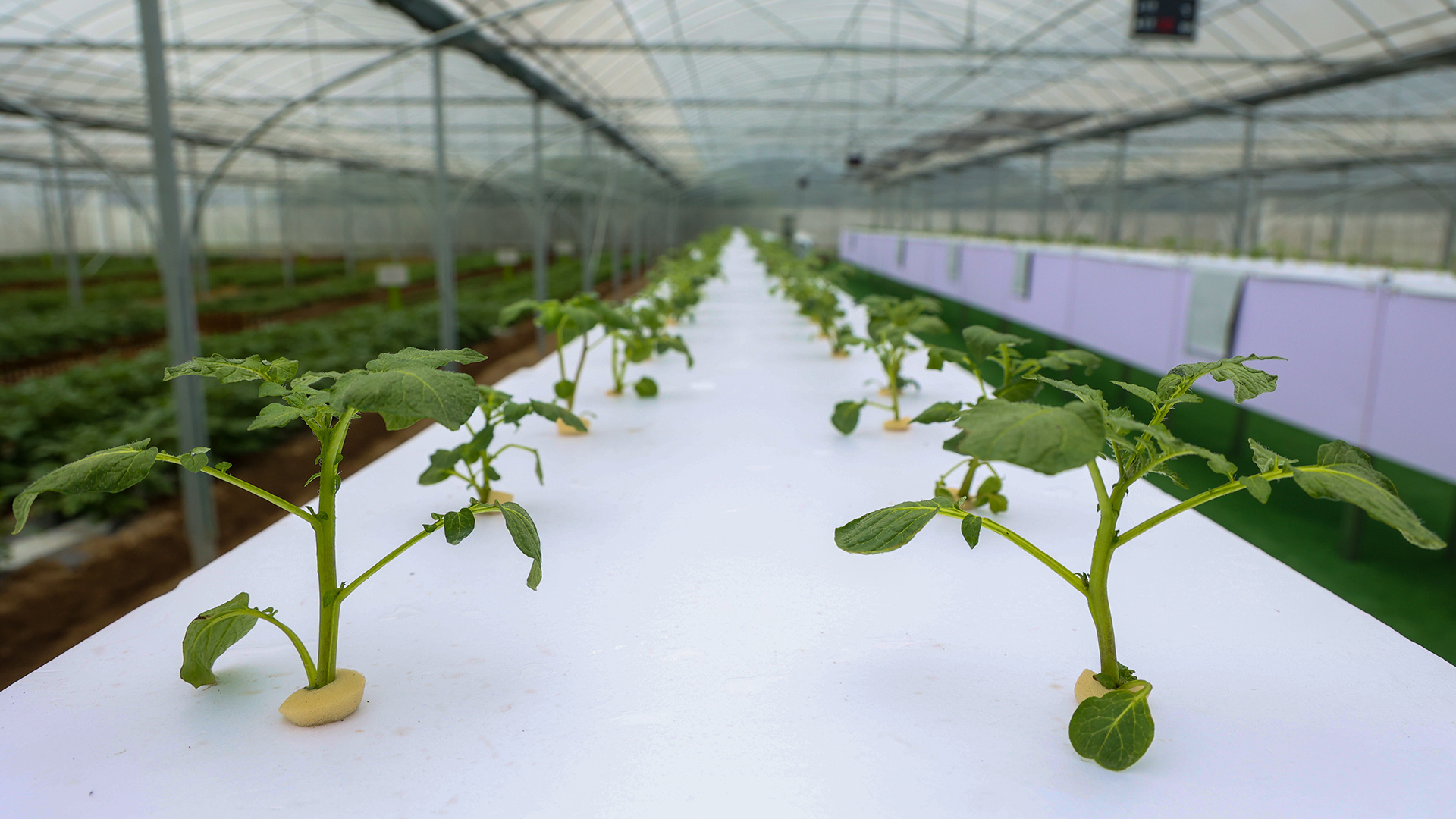 在胡陳鄉的洋芋工坊,布局了地膜栽培區、氣霧栽培區、良種展示區等洋芋種植區,最引人注目的就是納米氣霧栽培區了。
