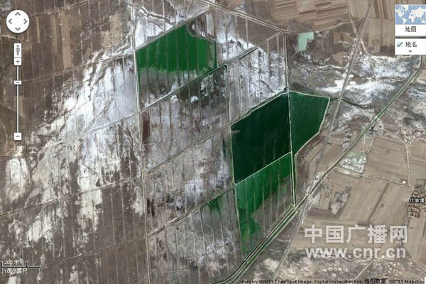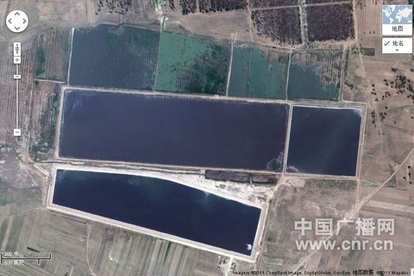 衛(wèi)星圖-人工挖掘的污水池全貌
