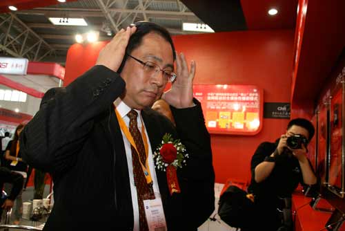 高通大中華區總裁孟樸在中央臺展區聽珍貴聲音資料