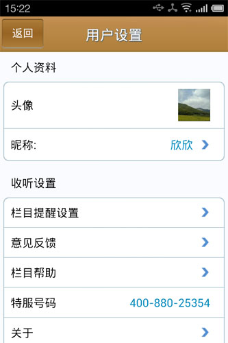 天翼中國鄉村之聲手機客戶端界面