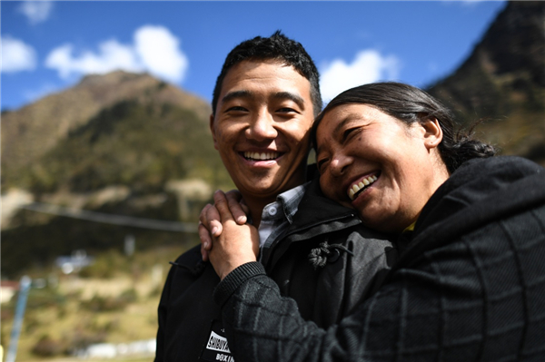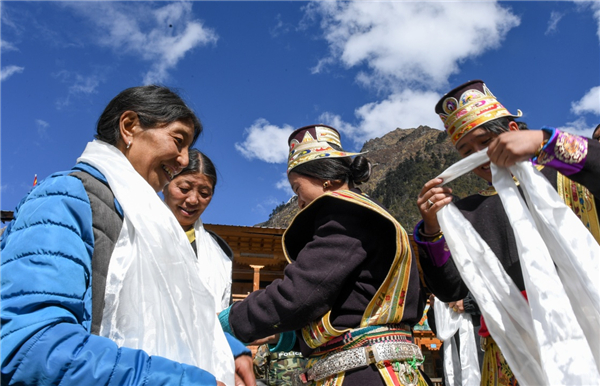 10月29日,西藏隆子縣玉麥鄉鄉親們給卓嘎、央宗姐妹獻上哈達表示祝賀。