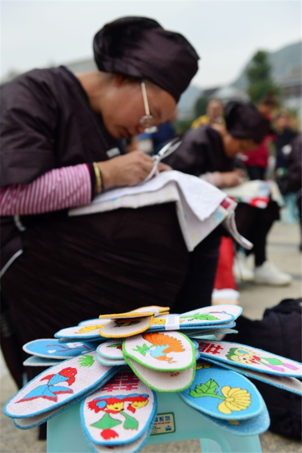 當(dāng)日,貴州省劍河縣舉辦第六期“錦繡計(jì)劃”培訓(xùn),來自該縣的50余名苗、侗等少數(shù)民族繡娘在刺繡傳承人的指導(dǎo)下,學(xué)習(xí)苗族錫繡、苗族紅繡、侗族刺繡及旅游商品設(shè)計(jì)等手工技能。目前,劍河縣“錦繡計(jì)劃”培訓(xùn)活動(dòng)已幫助350余名農(nóng)村婦女實(shí)現(xiàn)在“家門口”創(chuàng)業(yè)或就業(yè)。