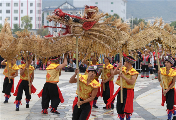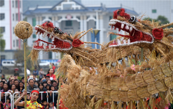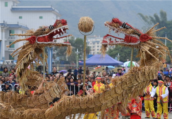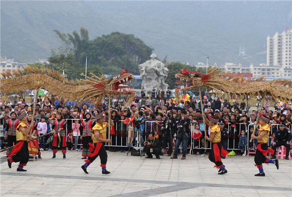 當(dāng)日,廣西羅城仫佬族自治縣舉行舞草龍大賽,來自各鄉(xiāng)鎮(zhèn)的草龍代表隊(duì)會(huì)聚縣城,歡慶一年五谷豐登,祈福來年風(fēng)調(diào)雨順。