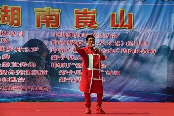 28日上午9時(shí)18分,“廣播惠農(nóng)愛在鄉(xiāng)村”系列公益活動(dòng)文藝演出在崀山景區(qū)北大門正式開演,著名歌唱家于乃久、“賣菜大姐”張學(xué)敏、中央民族歌舞團(tuán)青年歌唱家楊倩琳、央視星光大道實(shí)力男歌手袁忠山、央視星光大道3月月冠軍劉敏等通過表演戲曲、歌曲,為當(dāng)?shù)厝罕、游客送上一臺文化盛宴。