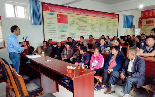 承德市林業局果桑站站長李子海給果農進行農技講座