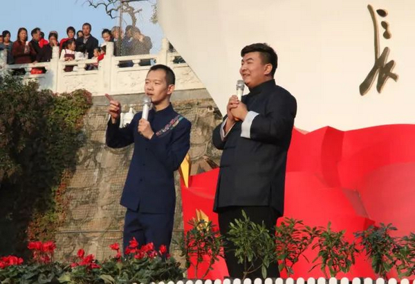 全國總工會文工團青年相聲演員侯振鵬、張?zhí)熨n帶來《歡樂新縣》,包袱不斷,雙簧表演更是令觀眾連連叫好。