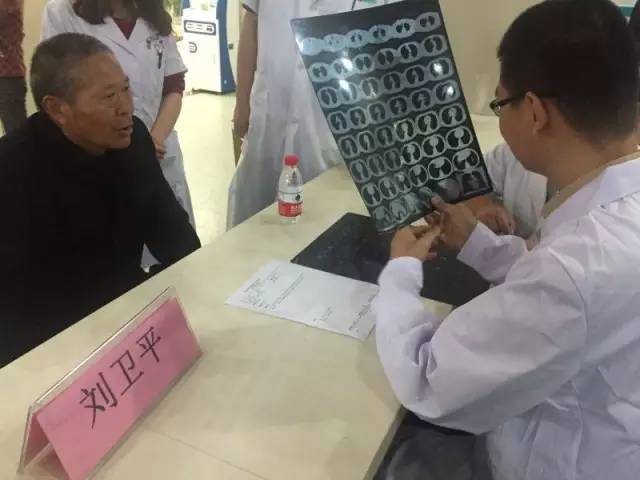 劉衛平醫生正在查房,在仔細詢問病情并查看病情的片子后,安撫患者保持良好心態,并提出具體治療方案。