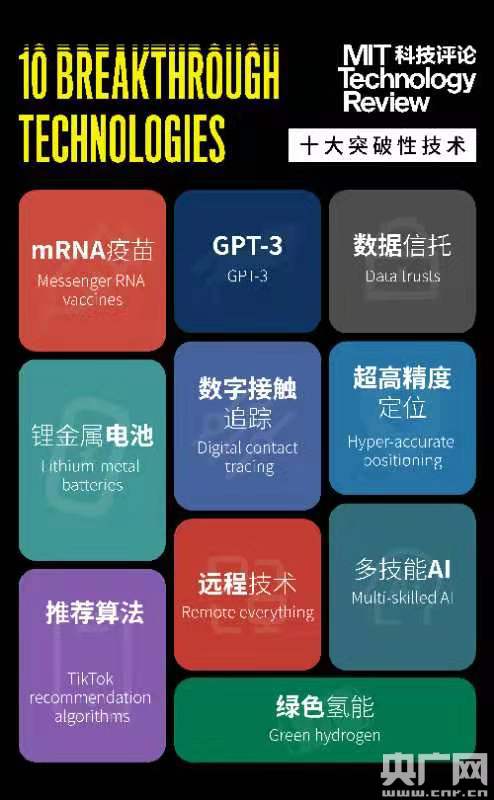 央廣網杭州2月24日消息(記者魏煒 王海鵬)2月24日,《麻省理工科技評論》一年一度的“十大突破性技術”(TR10)發布會在浙江杭州余杭未來科技城舉行。GPT-3、多技能AI、TikTok推薦算法、數據信托、遠程技術、超高精度定位、數字接觸追蹤、mRNA疫苗、鋰金屬電池、綠色氫能“全球十大突破性技術”現場揭曉。