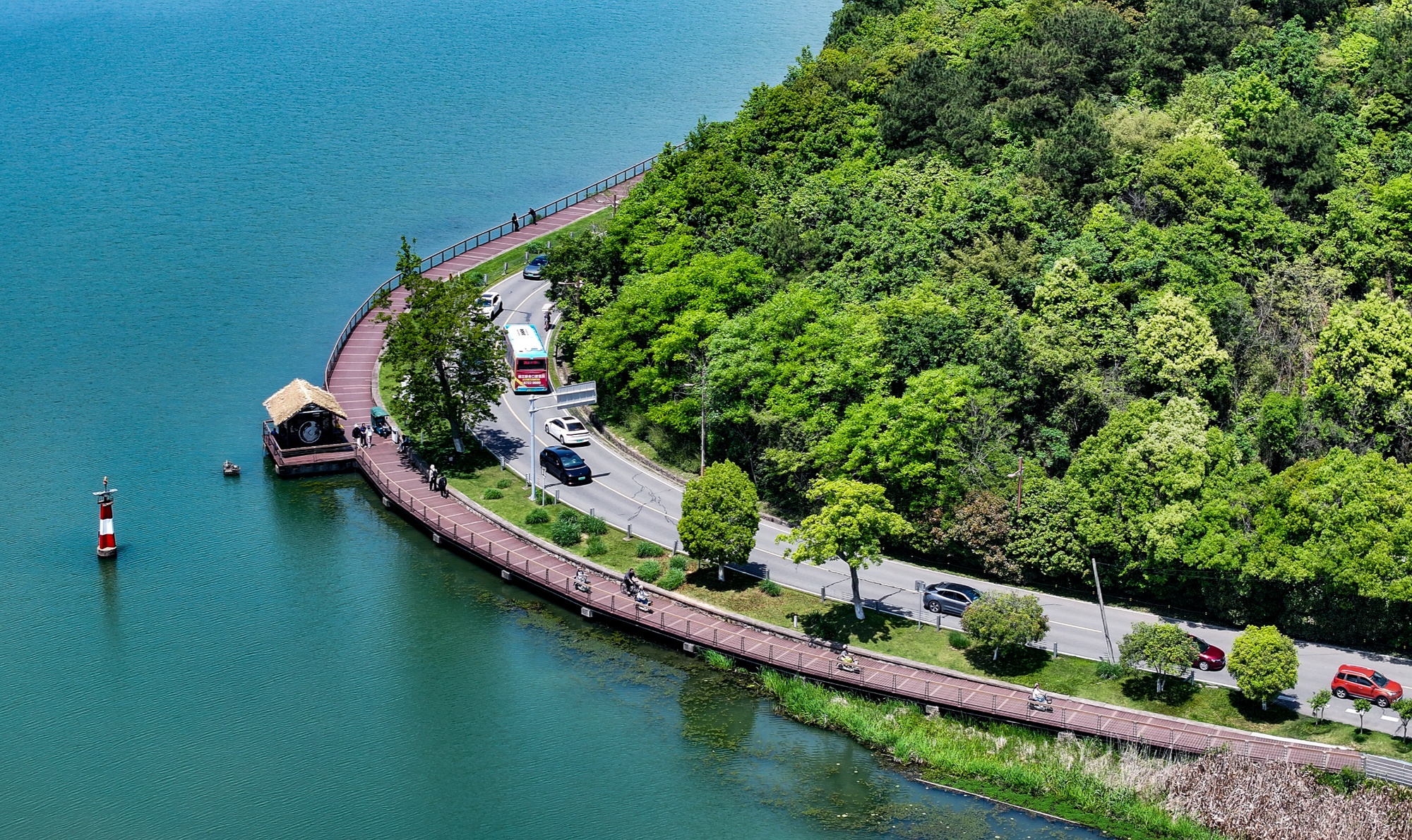 碧水環繞的環湖東路(央廣網發 嚴龍 攝)