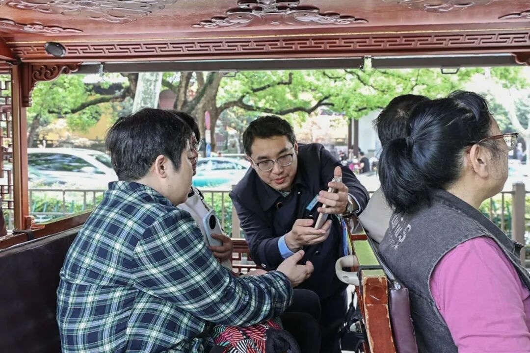 日積月累的學習,讓他不僅面對游客詢問時得心應手,更形成了“千人千面”的講解方式。他為親子家庭講述趣味典故;為學生結合課本實景解讀;為老年游客講述歷史傳說……讓觀光車成為一座流動的文化課堂。