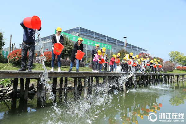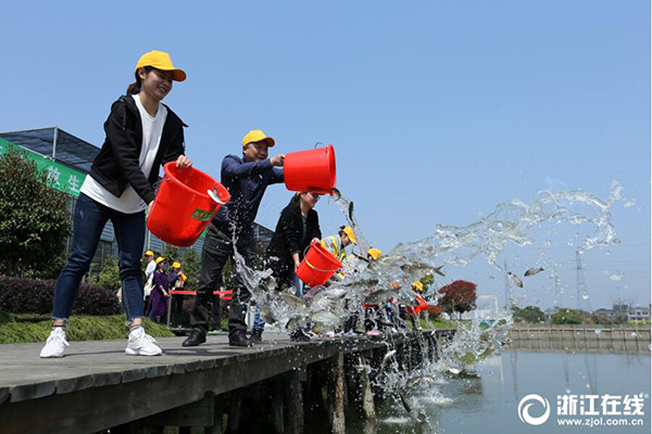 江蘇:蘇州舉行第四屆公益放魚活動(dòng) 投放魚苗潔凈太湖水,4月8日,第四屆“保護(hù)母親湖 我們?cè)谛袆?dòng)”潔凈太湖水公益放魚活動(dòng)在江蘇蘇州舉行,志愿者在活動(dòng)中投放魚苗。潔凈太湖水放魚公益活動(dòng)已持續(xù)4年,累計(jì)投放花白鰱魚、鲴魚苗18萬尾。