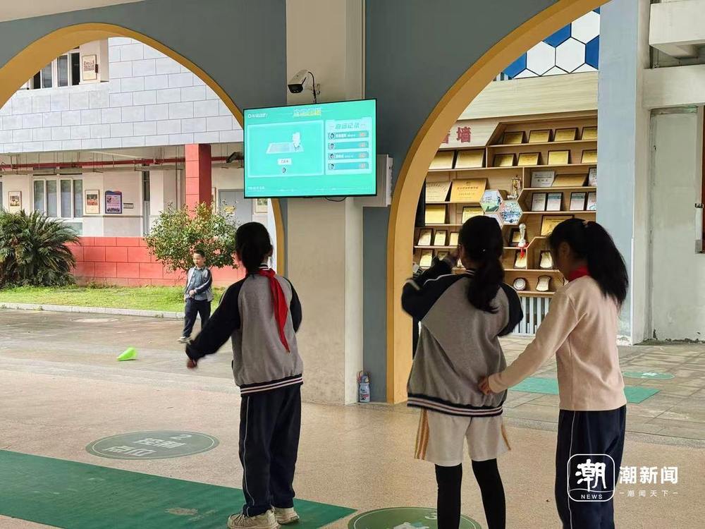 藻溪鎮小學的學生正在體驗“AI運動吧”。潮新聞記者 徐婷 攝